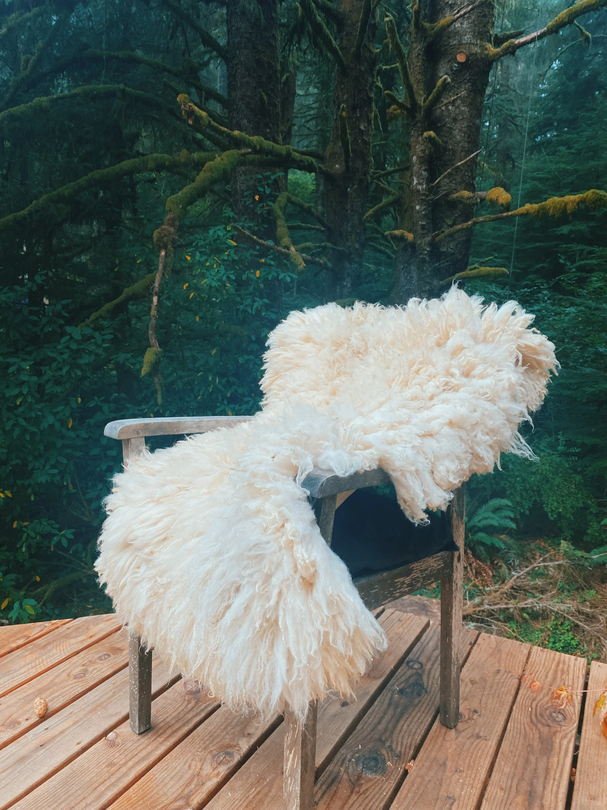 Sheepskins and other hides are traditionally hand tanned using natural bark tannins and fats. All hides are salvaged from waste streams where they would otherwise end up in landfills or discarded. Sustainable, chemical free comfort crafted with reverence for the animals, earth, and lifeways that sustain them.