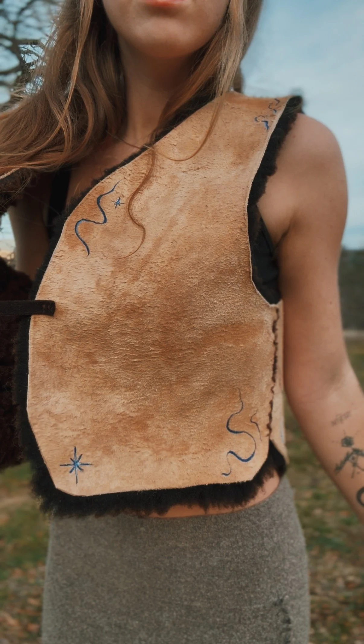 Ready to invest in a handmade vest? From making the leather to hand sewing, each vest is touched by my hands countless times. These pieces are crafted with intention, hand painted to become snug, protective talismans to wrap your body in.